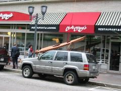 So what happens when you build a 17' long kayak in your living room on the 9th floor of an apartment building out of which you're about to move? Um, you need to find a way to move it out of the apartment. Stairs won't work. The freight elevator won't work (and don't even think about the passenger elevator!). That would seem to leave you with...the balcony.